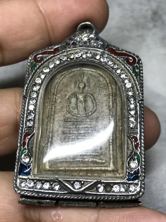 พระสมเด็จเก่า พร้อมตลับเงิน (ผสม) ฝังพลอย ลงยา ไม่ทราบที่