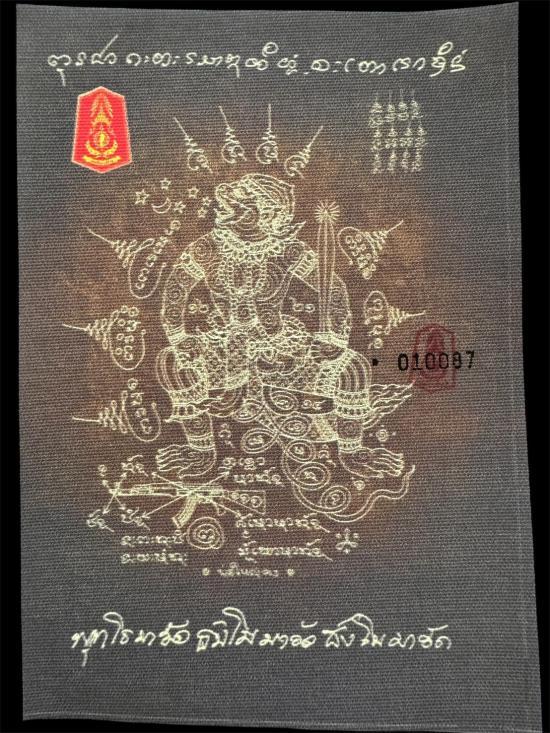 เคาะเดียว 200 ผ้ายันต์พหูรมานสีดำ no.010087 แม่ทัพภาคที่2.ทำแจกทหารชายแดนรอบที่2.หลวงปู่เมตตาอฐิฐานจิตเสกเดี่ยวอย่างเข้มขลัง(ผ้าแคนวาสสกรีนตรากองทัพภาคที่2)รันเลขนัมเบอร์พร้อมประทับหมึกเเดงตรากองทัพ |