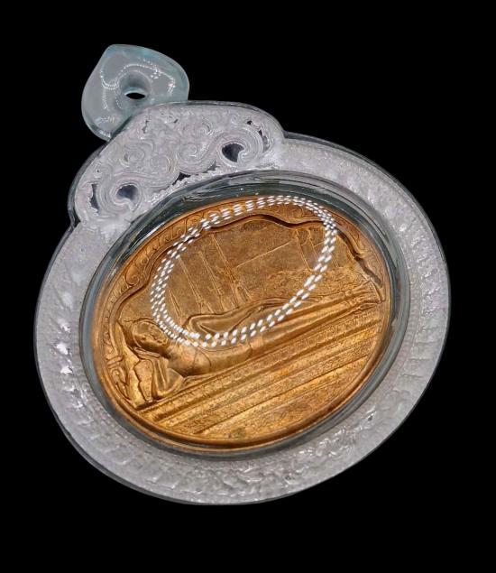 วัดใจ เคาะแรกแดง.เลี่ยมเลเซอร์ กันน้ำ สลักลาย พร้อมใช้ .เหรียญพระนอน วัดโพธิ์ หลัง ภปร. ในหลวง 5 รอบ ปี 2530 หลวงพ่อฤาษีลิงดำ ร่วมเสก |