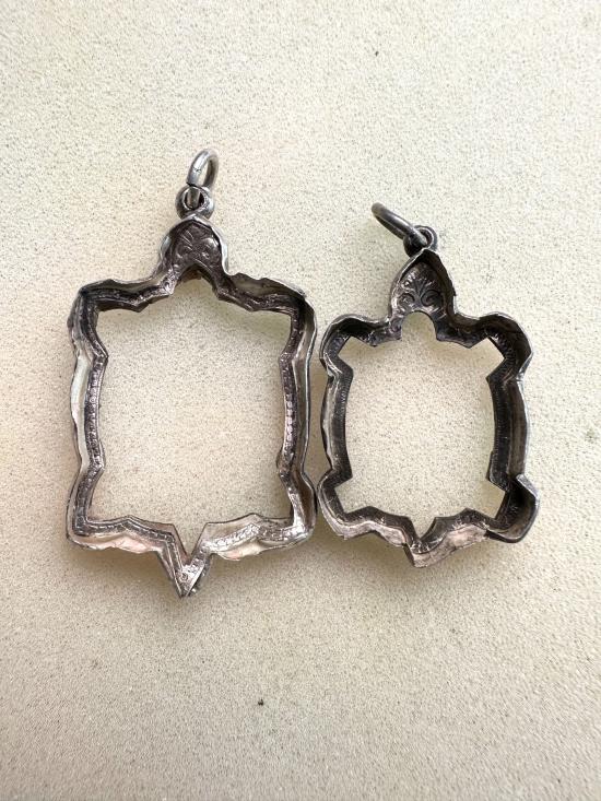 เคาะแรกแดง*กรอบเงินแท้ใส่เต่าสุขใจ+เต่าไตรมาส กระทู้เดียวได้ 2ใบ น้ำหนักรวม 12.75กรัม พร้อมใช้งานค่ะ ขนาดอยู่ในรูปด้านล่างค่ะ