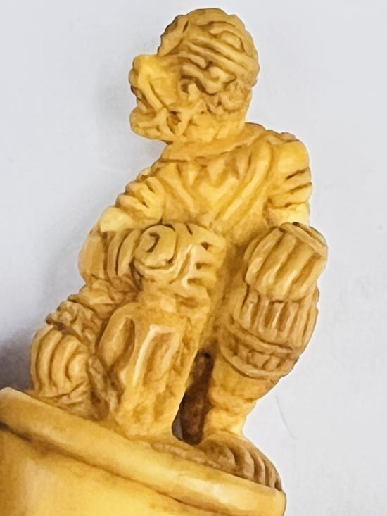 วัดใจ หนุมานนั่่งถืออาวุธ งาแกะไม่ทราบเกจิ สูง 1.5 นิ้ว