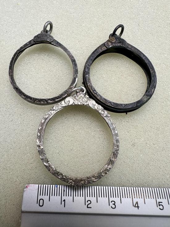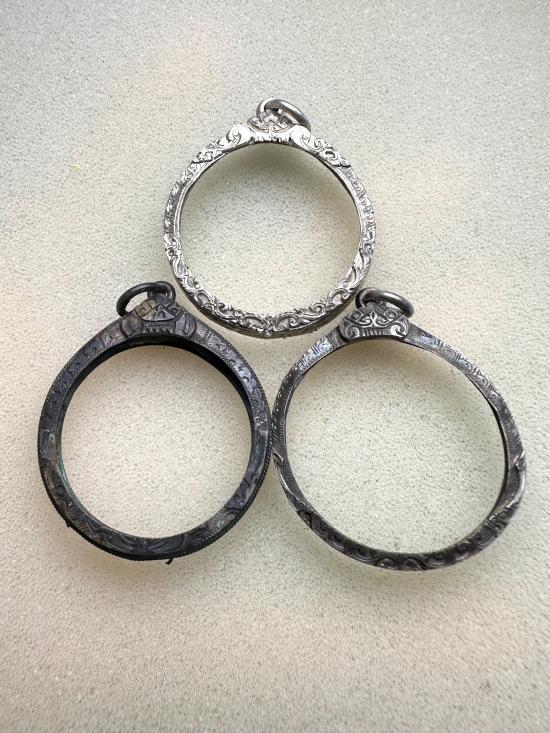 กรอบเงินแท้ ทรงกลม3ใบ ขนาดเดียวกัน หนักรวม 13.96 ขนาดอยู่ในรูปด้านล่างค่ะ
