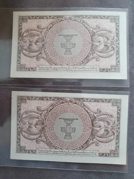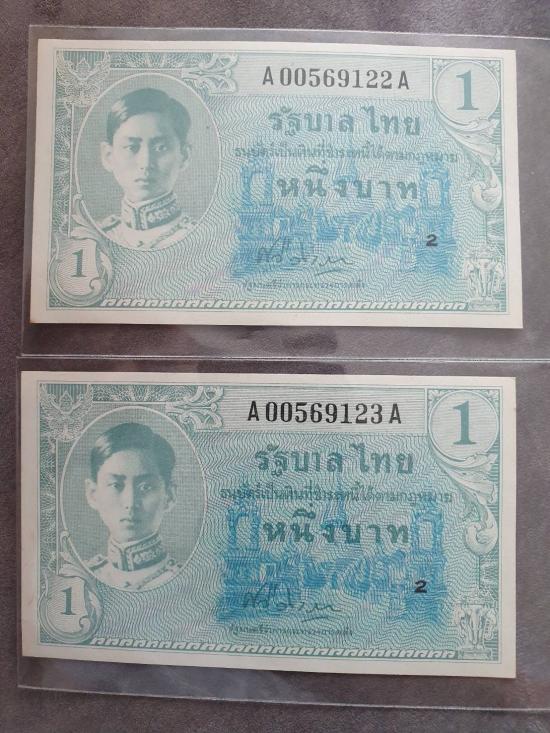 ธนบัตร 1 บาท รัชกาลที่ 8 สภาพไม่ผ่านใช้ จำนวน 2 ใบ เลขเรียง |