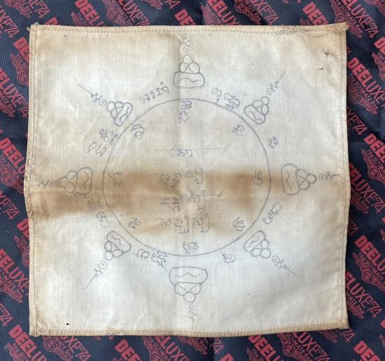 ผ้ายันต์รองหมวก หรือหัวเสาไม่เเน่ใจ จารมือ เก่าแท้ดูง่ายไม่ทราบที่ครับ สภาพสวยเดิมๆครับ |