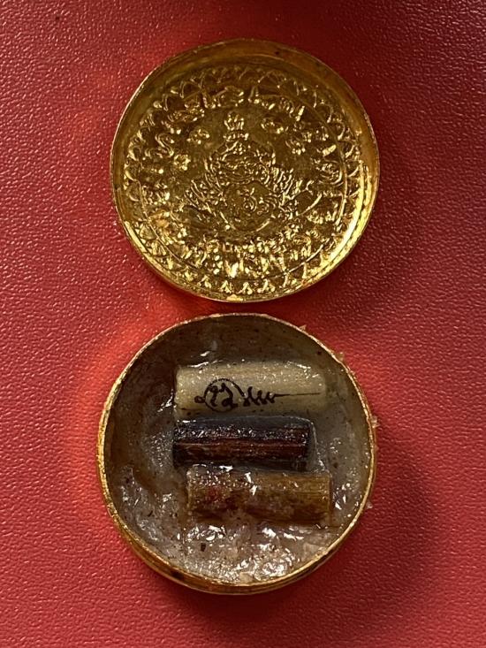 เนื้อ โลหะชุบทองลงยาสีแดงขอบสีนำ้เงิน ขนาด3.2ซม |