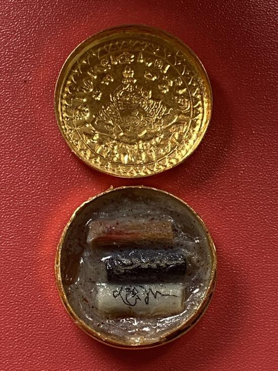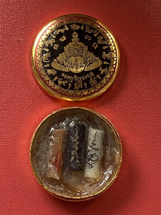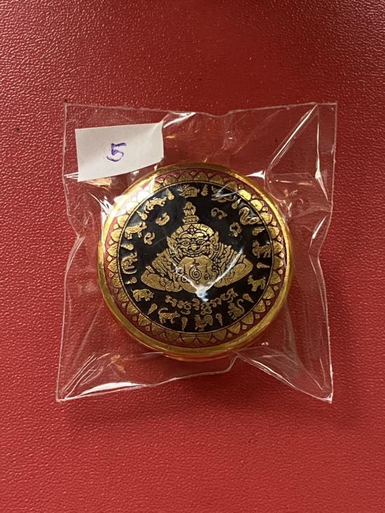 เคาะเดียวแดง สีผึ้งพระราหู รุ่น มงคลจักรวาล เนื้อ โลหะชุบทองลงยาสีดำขอบสีแดง ขนาด3.2ซม |