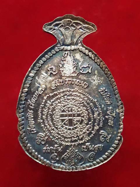 เหรียญถุงเงิน หลังยันต์ดวงมหาเศรษฐี หลวงปู่คำบุ วัดกุดชมภู ปี2553