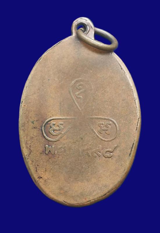 เหรียญหลวงพ่อหอม วัดชากหมาก บ้านฉาง จ.ระยอง รุ่นแรก ๒๔๙๘ บล็อกหน้าโหนก พิมพ์นิยม 4 ชาย เนื้อทองแดง |