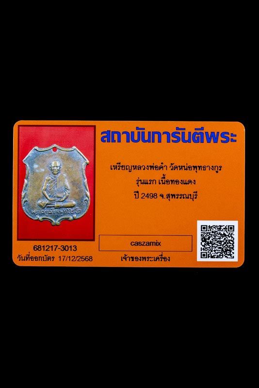 เหรียญหลวงพ่อคำ วัดหน่อพุทธางกูร รุ่นแรก เนื้อทองแดง ปี 2498 จ.สุพรรณบุรี