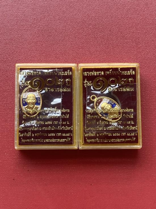 เคาะเดียวแดง เม็ดแตง 2องค์หลวงปู่ทวด รุ่น102ปีอาจารย์ทิม เนื้อชุบทองลงยาสีธงชาติ