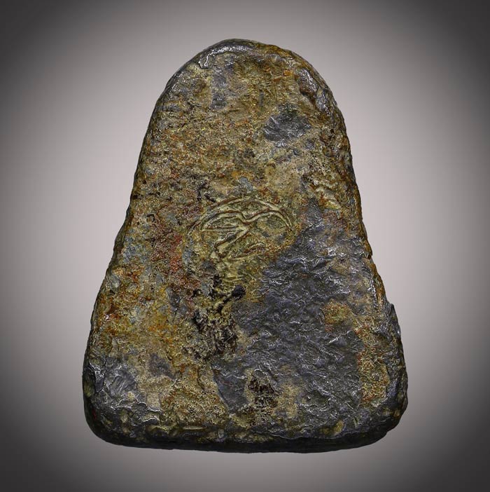 พระปิดตา เนื้อตะกั่วเก่า ด้านหลังมีจารยันต์(ไม่ทราบที่) ขนาดพระ ฐาน 1.3cm สูง 1.6 cm สภาพเก่ามีอายุ |