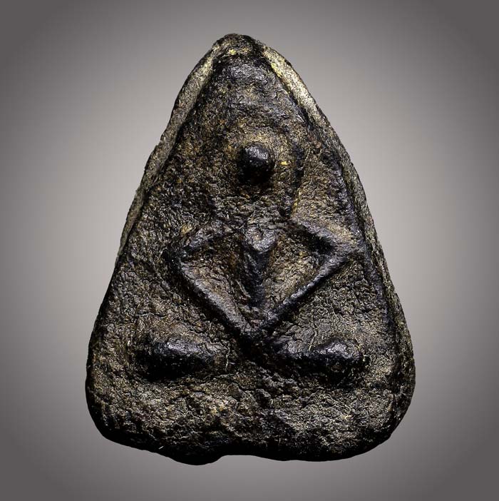 (วัดใจ)พระพุทธ เนื้อผงคลุกรัก พิมพ์แขนหักศอก (ไม่ทราบที่)ด้านหลังจารย์ยันต์แบบเปียก ขนาดพระ ฐาน 1.5 cm สูง 2 cm |