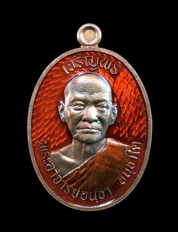 +!!เคาะเดียวllดง ตลอดสาย!!+ (หมายเลข 7) เหรียญ เจริญพร(บน) รุ่นแรก หลวงพ่ออนุชา อนุชาโต วัดโพธิ์ราษฏร์บูรณะ จ.ราชบุรี (เนื้อนวะผิวโหด ลงยาส้ม ลงยาจีวร สร้างแค่ 19 เหรียญ) พร้อมกล่องครับ