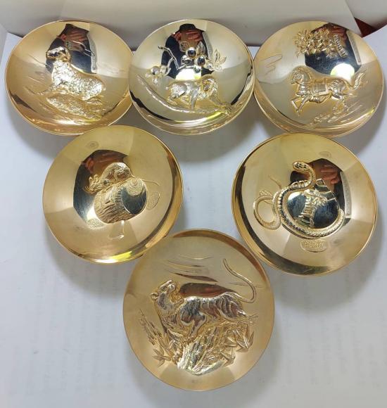 ***วัดใจ ***ชุดพานของสะสม งานนอก 24k GPชุบทองคำ 99%. ลายมงคล 6 ชิ้น ลายนักษัตรมงคล สวยๆ |
