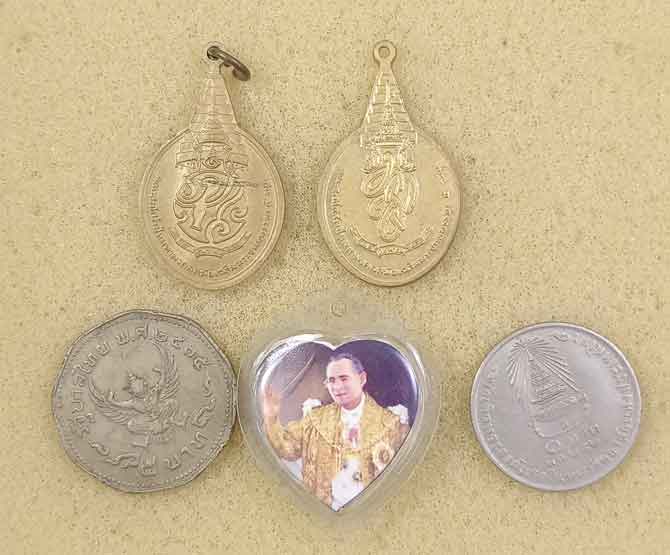 เหรียญร.1 + เหรียญร.5 + เหรียญร.6 + เหรียญพระชัยหลังช้าง 2 เหรียญ + เหรียญ ร.9 +ล็อกเก็ต ร.9 + เหรียญ พระเทพ