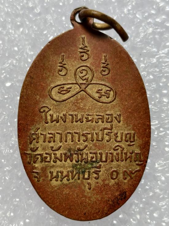 เหรียญรุ่นแรก หลวงพ่อดิษฐ์ วัดอัมพวัน อำเภอบางใหญ่ จังหวัดนนทบุรี ปี 2509 เนื้อทองฝาบาตร กะไหล่ทอง พิมพ์นิยม (หูเฉาะ) |