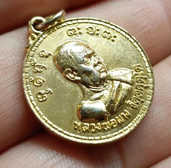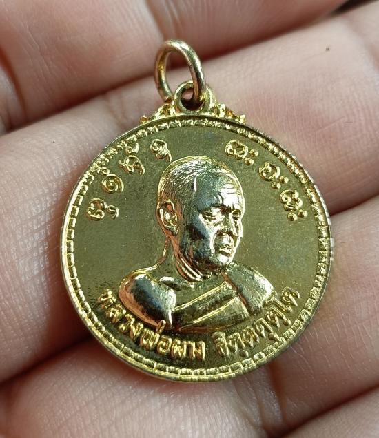 เหรียญขวัญถุง - ปลอดภัย - มั่งมี - ศรีสุข หลวงพ่อผาง วัดอุดมคงคาคีรีเขต จ.ขอนแก่น กะไหล่ทอง ปี 2518 |