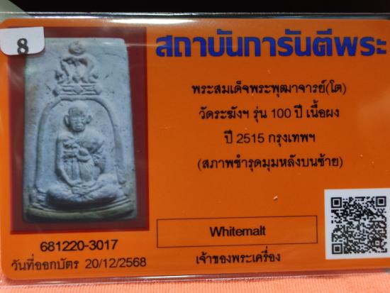 พระสมเด็จ100ปี พิมพ์รูปเหมือนสมเด็จโต วัดระฆัง ปี2515 พร้อมบัตรรับรอง ระบุสภาพตำหนิด้านหลังองค์พระครับ ไม่มีกล่องเดิม