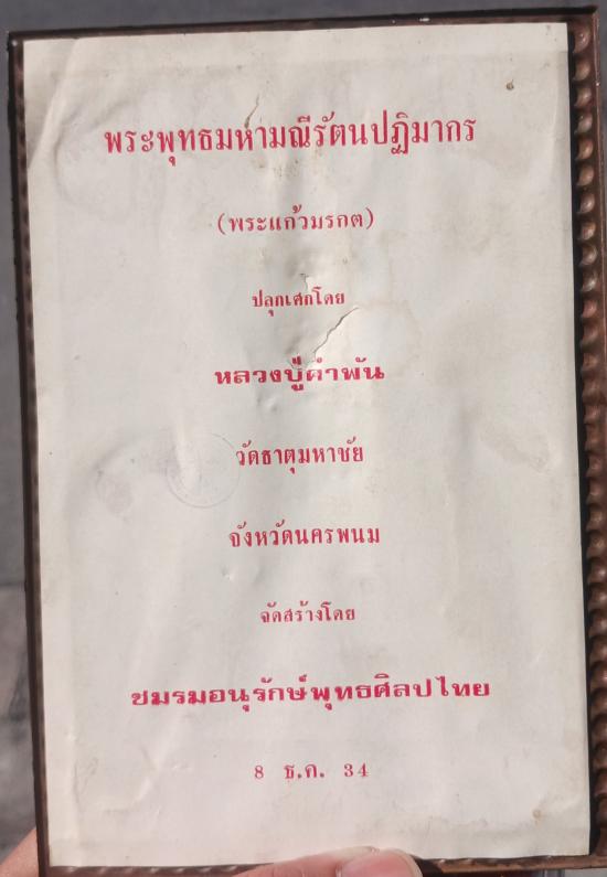 แผ่นปั๊ม พระแก้วมรกต ปี34 หลวงปู่คำพัน วัดธาตุมหาชัย เดิมๆ ชัดเจน