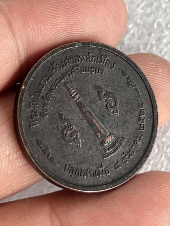 เหรียญสมเด็จพระรามาธิบดี ที่ 1 สมเด็จพระเจ้าอู่ทอง ที่ระลึกในงานสร้างศาลหลักเมือง จ.อยุธยา ปี 2525 ล.ป.ดู่ ปลุกเสก |