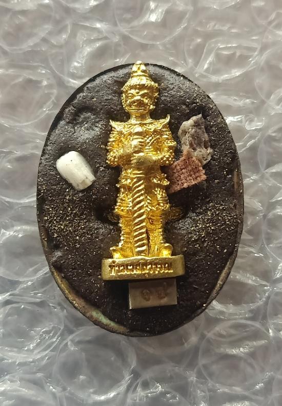ล็อกเก็ตฉากทอง ด้านหลังฝังท้าวเวสสุวรรณ พลอยเสก จีวร ข้าวสารหิน