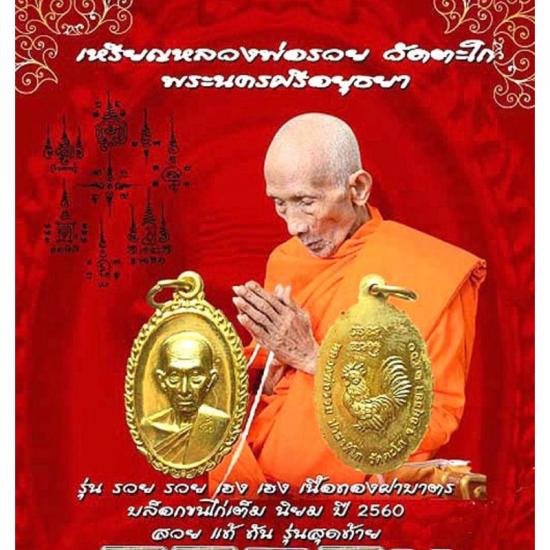 รวยๆเฮงๆ เหรียญหลวงพ่อรวย วัดตะโก อยุธยา รุ่น รวย รวย เฮง เฮง ออกในปี 2560 ทันหลวงพ่อ รุ่นสุดท้าย ประสบการณ์ดังรถไฟชน เนื้อทองฝาบาตร หลวงปู่เฮง ปภาโส ร่วมปลุกเสก หายากแล้วครับ มีประสปการฯณ์มากครับ ด้านหลังไก่ตัวใหญ่และยันต์ครูวัดตะโก กล่องเดิมจากวัด เป็นรุ่นที่หลวงพ่อรวย ปาสาทิโก เมตตาปลุกเสกให้เป็นรุ่นสุดท้าย เพื่อนำปัจจัยสร้างพระมหาธาตุเจดีย์ เจตนาบริสุทธิ์เพื่อทำนุบำรุงสร้างถาวรวัตถุในพระพุทธศาสนา ผู้สร้างบริสุทธิ์ หลวงพ่อรวย ปาสาทิโก ท่านอยู่อย่างสมถะ นอนเตียงไม้อยู่หลังพระประธาน ไม่มีสิ่งฟุ้งเฟ้ออำนวยความสะดวกเกินความจำเป็นของสมณะสงฆ์ พระเครื่องและวัตถุมงคลของหลวงพ่อรวย วัดตะโก มีประสบการณ์มากมายทั้งทางด้านแคล้วคลาดปลอดภัยจากภัยอันตราย และโดยเฉพาะอย่างยิ่งด้านโชคลาภ ค้าขาย รวยเจริญสุข เงินทองไม่ขาดมือ ทำให้คนนิยมบูชาศรัทธากันทั่วประเทศ ไปถึงต่างประเทศ ทั้งด้วยชื่อท่านเป็นมงคล และ ชื่อรุ่นเป็นมงคล เหรียญทองเหลืองฝาบาตร สภาพสวย ตอกโค๊ด รวย ที่สังฆาฏิ |