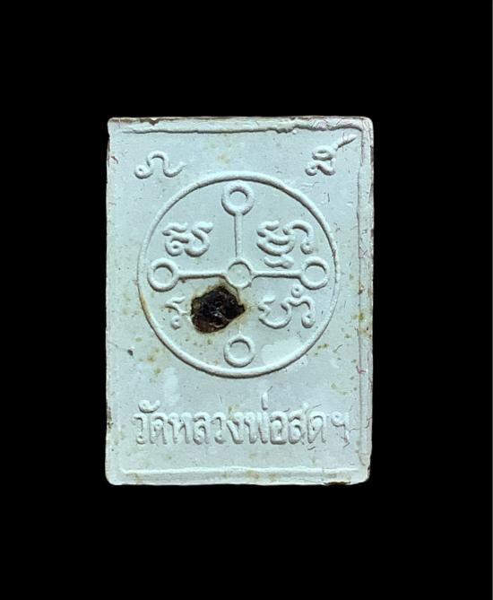 พลิกมาด้านหน้าก็เห็นว่า เป็นพระผงสี่เหลี่ยมขนาดเล็ก มีสีขาวออกครีม