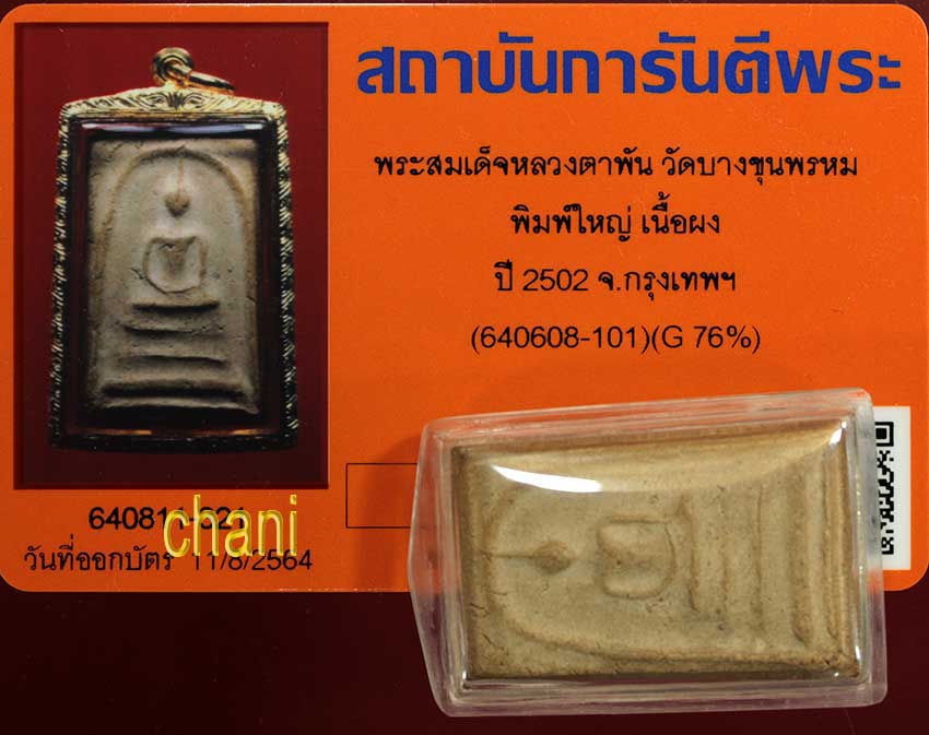 พระสมเด็จหลวงตาพัน วัดบางขุนพรหม พิมพ์ใหญ่ไหล่ยก นิยม เนื้อผง ปี2502 จ.กรุงเทพฯ สภาพสวยๆระดับประกวด พร้อมบัตรรับรองพระแท้จากจีพระอุ่นใจได้ ไม่ต้องลุ้นค่ะ