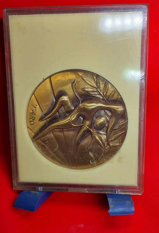 เหรียญที่ระลึกการแข่งขันกีฬาโอลิมปิกที่มิวนิก เยรมันนี ปี 1972 อายุ 53 ปี เนื้อบรอนซ์ (Bronze) เป็นเหรียญที่ระลึกที่ออกแบบโดยศิลปินชื่อดังชาวญี่ปุ่น ทาโร โอคาโมโตะ (Taro Okamoto)