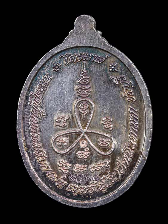 เหรียญไตรมาสปี 37 หลวงปู่ม่น วัดเนินตามาก เนื้อเงินลงยา เลข2528 ไม่มีกล่อง รับประกันตามกฎ