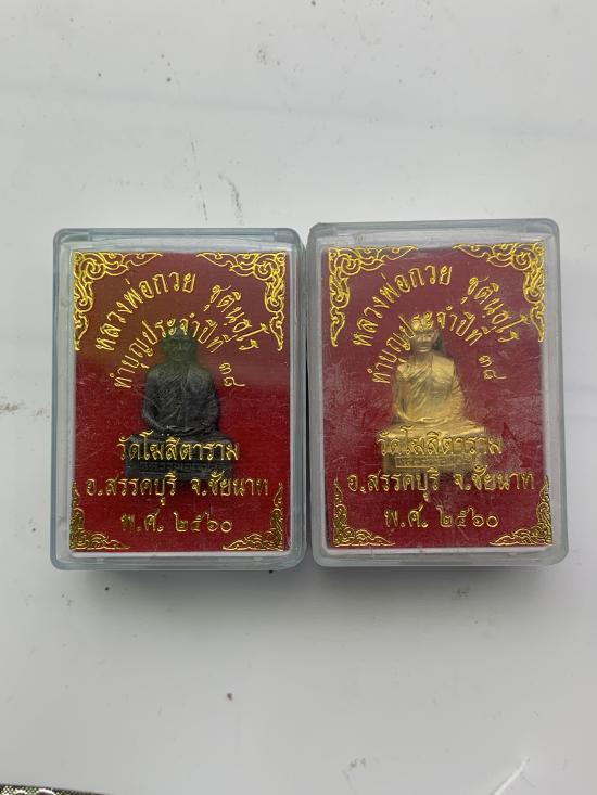 (เคาะเดียววัดใจ)เเพ็คคู่หลวงพ่อกวย ปี60 รมดำ ,กระไหล่ทอง สวยเดิม