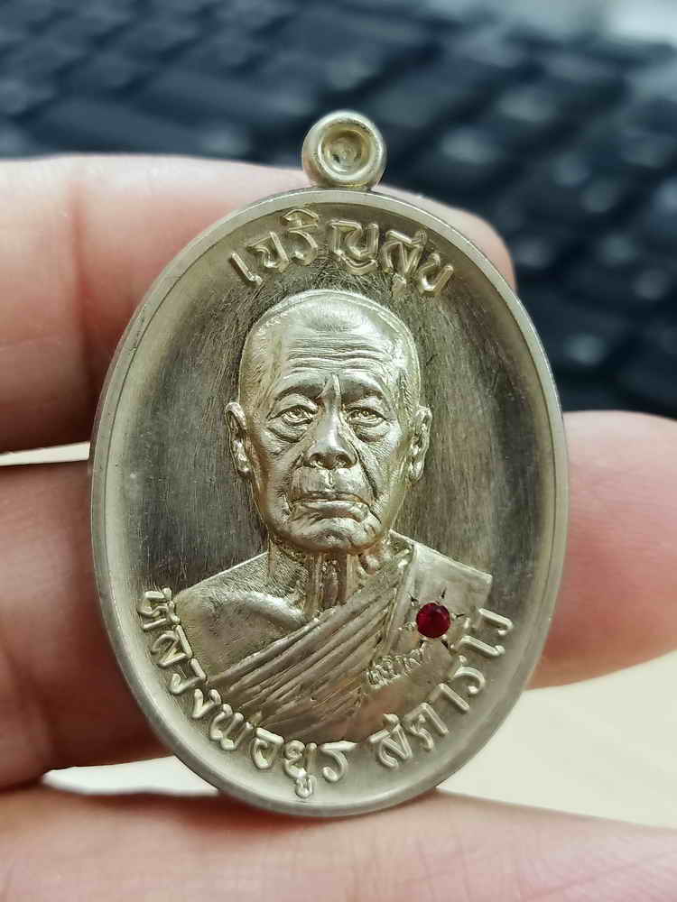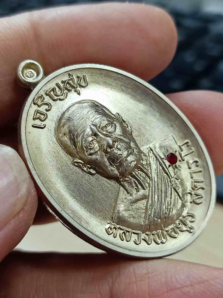วัดใจ 100 PSGA เหรียญเจริญสุข งานบุญกฐิน หลวงพ่อยูร สคารโว วัดพนมเศษเหนือ จ.นครสวรรค์ ปี 2566 เนื้ออัลปาก้า ฝังพลอยแดง หมายเลข 123 กล่องเดิม ***ป๋องสุพรรณการันตี |
