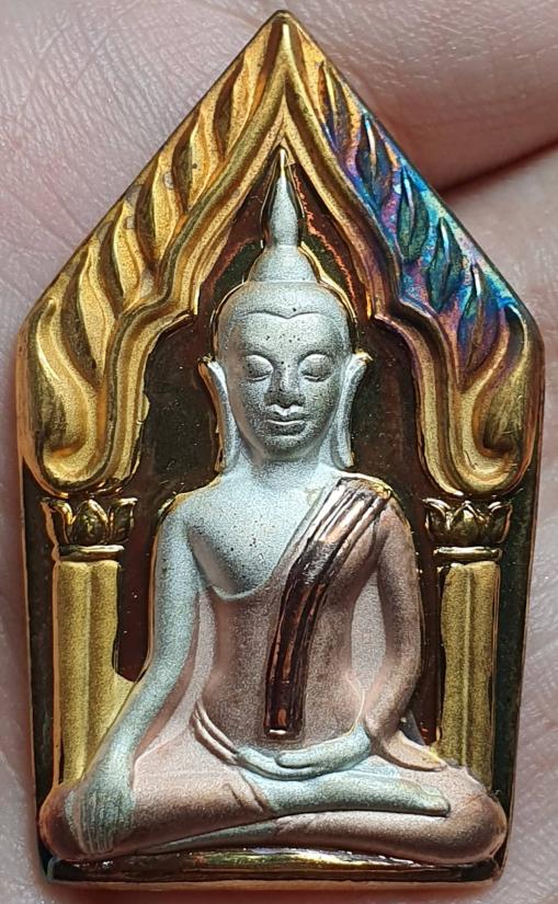 เนื้อโลหะชุบ3กษัติรย์พ่นทรายขัดเงาสภาพสมบูรณ์ ผิวพรรณสวยเดิมรุ้งขึ้นธรรมชาติ พร้อมกล่องเดิมจากวัด พระแท้ดูง่ายสบายตา |