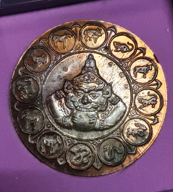 เหรียญองค์พ่อจตุคามรามเทพ "รุ่นก้าวหน้า มหาโชค มหาเศรษฐี" วัดคงคาวง (วัดอ้ายเขียว) อ.พรหมคีรี จ.นครศรีธรรมราช ปี 2550 เนื้อนวะพลายเงินวิ่งสวย มีโค้ตและหมายเลขกำกับ |