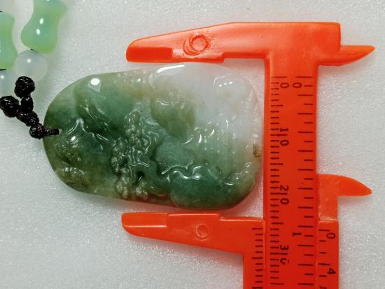 แกะสลักจากหยกสองสี(หยกหยิน-หยาง) แบ่งแยกสีชัดเจนขาว-เขียว มีความสวยงามและแปลกตามาก พร้อมใบรับประกันหยกแท้จากเมืองจีน