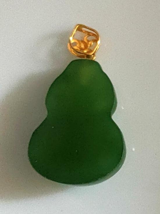 จี้หยกเนฟไฟท์ แกะลายน้ำเต้า ความหมายดีค่ะ หยกคัดเกรดทำทอง สีสวยสีเกรดท๊อป ตะขอทองคำแท้18K มีตอก ปิดเบาๆ เฉพาะค่าตะขอ งานใหม่สองพันกว่าแล้วค่ะ