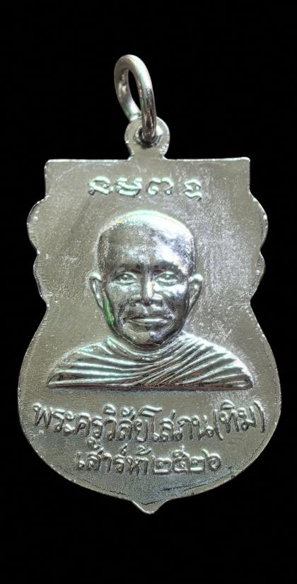 เหรียญรุ่นใต้ร่มเย็นเสาร์ 5 หลวงปู่ทวด หลังอาจารย์ทิม วัดช้างให้ เนื้ออัลปาก้าชุบนิกเกิล บล็อกวัด ปี 2526 |