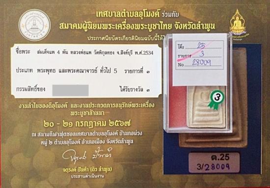 ***ติดรางวัล***สมเด็จแพ 4 พัน หลวงพ่อแพ วัดพิกุลทอง ติดรางวัลที่ 3 งานสมาคม มาพร้อมใบประกาศ <38>