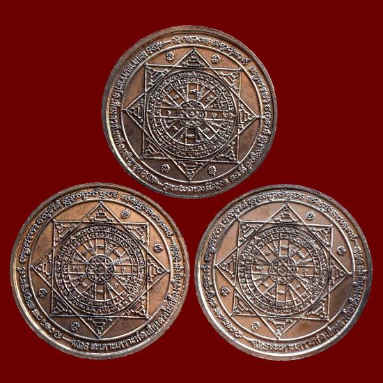 ชุด 3 องค์...เหรียญสุริยันต์ จันทราเทพ เนื้ออัลปาก้า ปี 2556 หลวงปู่สิงห์ วัดบ้านป่าตะแบง จ.นครราชสีมา พร้อมซองรูปเดิมจากวัด สภาพพระตามรูปที่ลงทุกประการ (ขนาดประมาณ 3.1 ซม.)