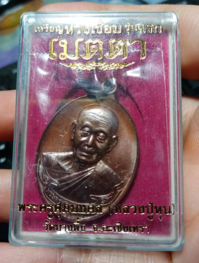 129.........วัดใจ เหรียญห่วงเชื่อม รุ่นแรก เมตตา หลวงปู่หุน วัดบางผึ้ง จ.ฉะเชิ่งเทรา เนื้อทองแดงมันปู ( โค๊ต แจกทาน ) ปี 2558 |