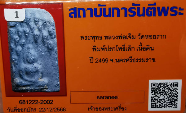 พระพุทธ หลวงพ่อเจิม วัดหอยราก พิมพ์ปรกโพธิ์เล็ก เนื้อดิน ปี2499 จ.นครศรีธรรมราช + บัตรG-pra สภาพเดิมค่ะ |
