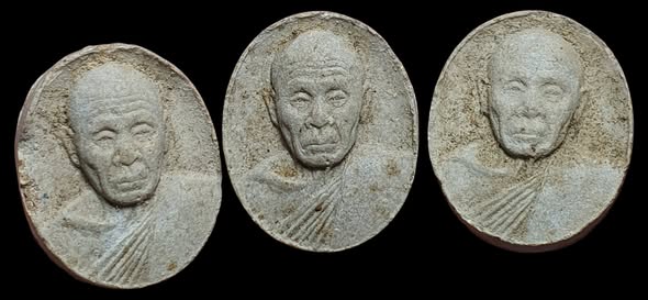 3องค์พระผงเม็ดกระดุม พิมพ์6ชาย หลวงปู่แผ้ว ปวโร วัดกำแพงแสน ปี2545 |