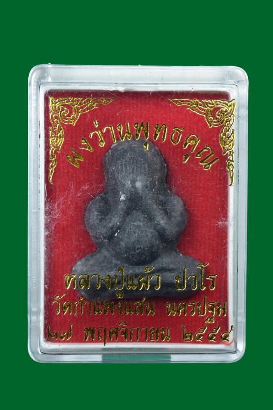วัดใจ พระปิดตา ผงว่านพุทธคุณ หลวงปู่แผ้ว วัดกำแพงแสน จ.นครปฐม ปี 2554 สภาพสวย พร้อมกล่องเดิม |