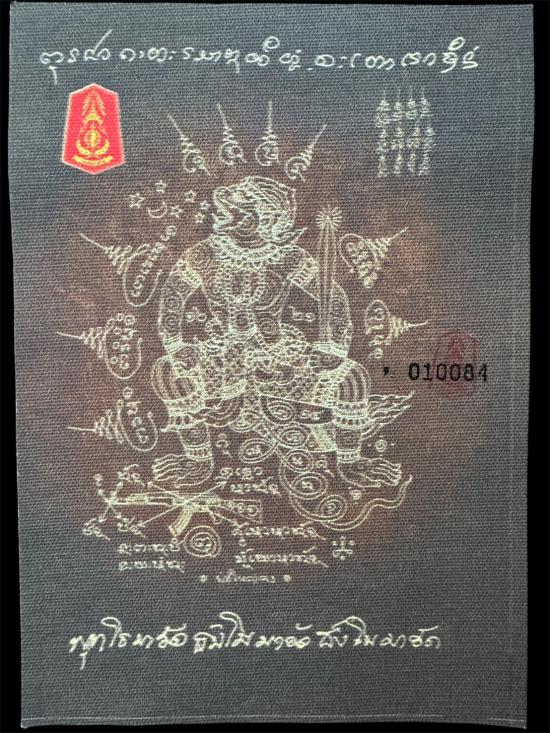 เคาะเดียว 200 ผ้ายันต์พหูรมานสีดำ no.010084 แม่ทัพภาคที่2.ทำแจกทหารชายแดนรอบที่2.หลวงปู่เมตตาอฐิฐานจิตเสกเดี่ยวอย่างเข้มขลัง(ผ้าแคนวาสสกรีนตรากองทัพภาคที่2)รันเลขนัมเบอร์พร้อมประทับหมึกเเดงตรากองทัพ |