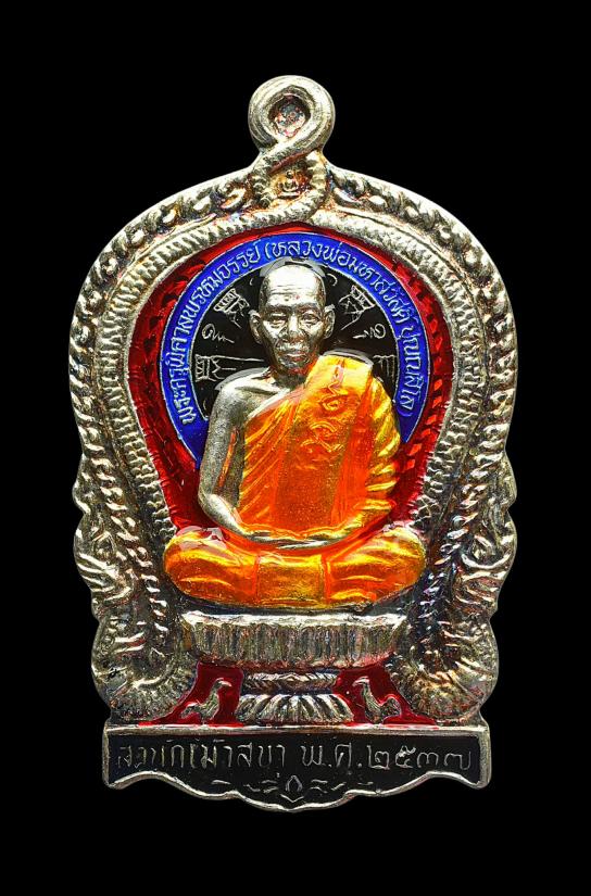 เหรียญพิมพ์นั่งพาน รุ่น 1 หลวงพ่อสวัสดิ์ ปุณณสีโล เนื้อเงินลงยาสีดำ หมายเลข 100 วัดใจเคาะแรก!!!