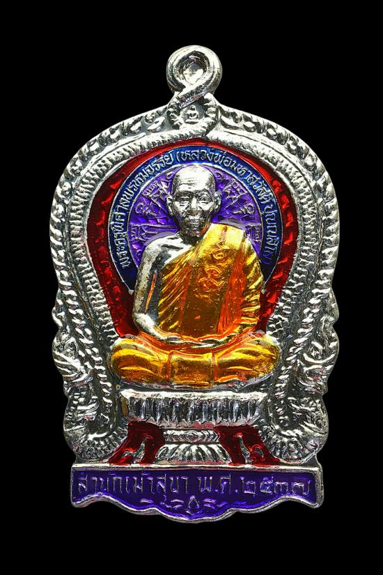 เหรียญพิมพ์นั่งพาน รุ่น 1 หลวงพ่อสวัสดิ์ ปุณณสีโล เนื้อเงินลงยาสีม่วง หมายเลข 161 วัดใจเคาะแรก!!!