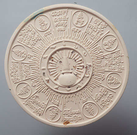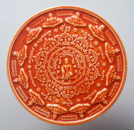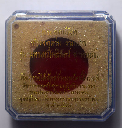 จตุคามรามเทพ รุ่น มหาเทวโพธิสัตว์สุวรรณภูมิ ปี 2550 กระเบื้องเคลือบสีฟ้า ( สีทูลเกล้า ) + เคลือบแดง หลังเจดีย์ |