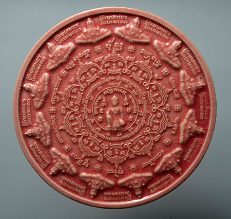 จตุคามรามเทพ รุ่น มหาเทวโพธิสัตว์สุวรรณภูมิ ปี 2550 กระเบื้องเคลือบสีชมพู พิเศษ องค์พ่อ 2 หน้า |