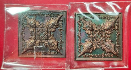 หลวงปู่ศิลา เหรียญพระพรหมข้าวหลามตัด รุ่น เหนือดวง เนื้อทoงแดงผิวรุ้ง จำนวน 2 เหรียญ |