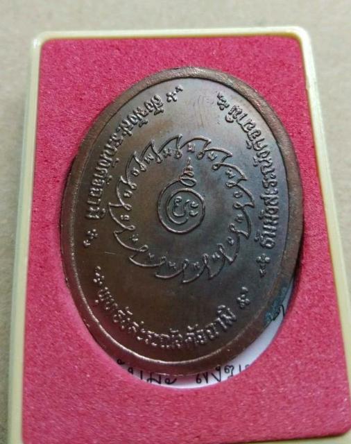 ด้าน หลังมีคาถา รายรอบ พุทธังสะระณังคัจฉามิ ธัมมังสะระณังคัจฉามิ สังฆังสะระณังคัจฉามิ